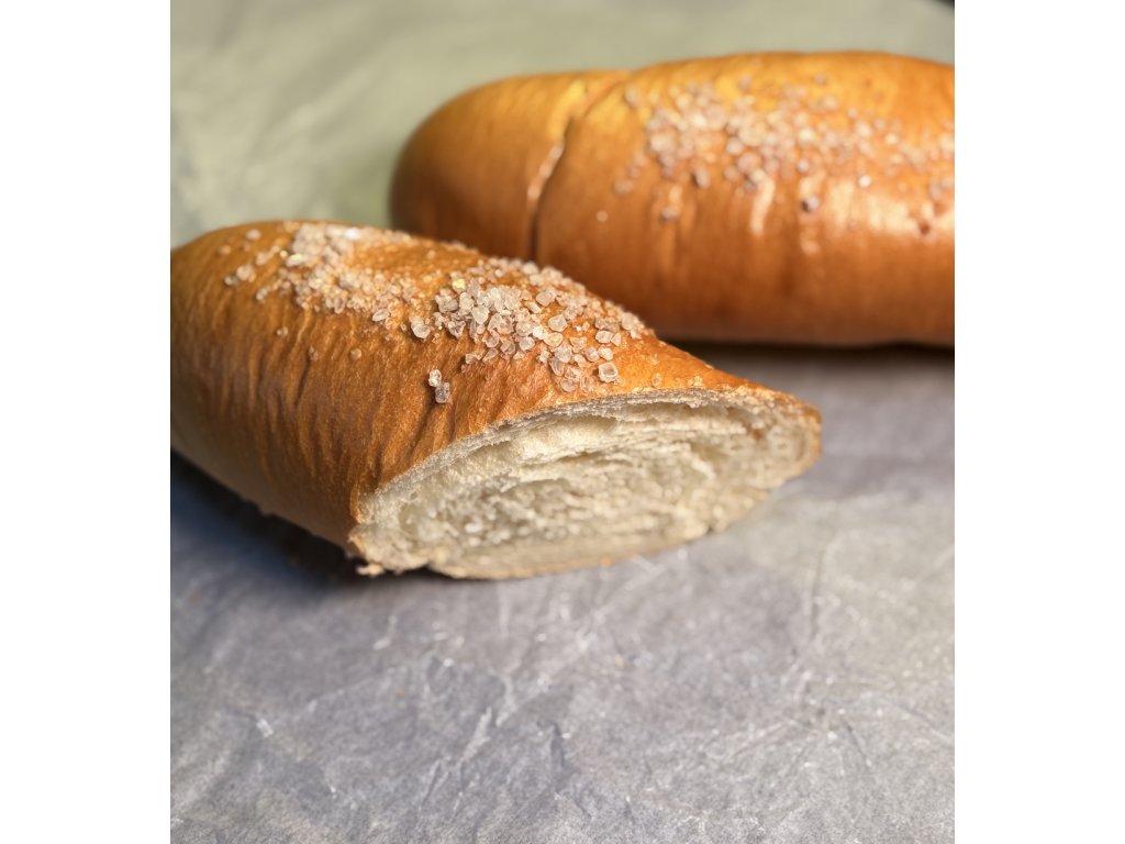 Je vyrobená z kvalitnej múky, ručne vedeného kvásku a prírodných ingrediencií. Vďaka dlhému procesu kysnutia má jemnú, vzdušnú striedku a chrumkavú kôrku. Povrch je jemne posypaný hrubozrnnou soľou, ktorá zvýrazňuje chuť a dodáva bagete charakter.