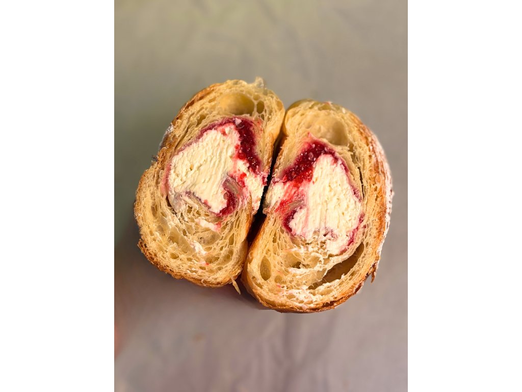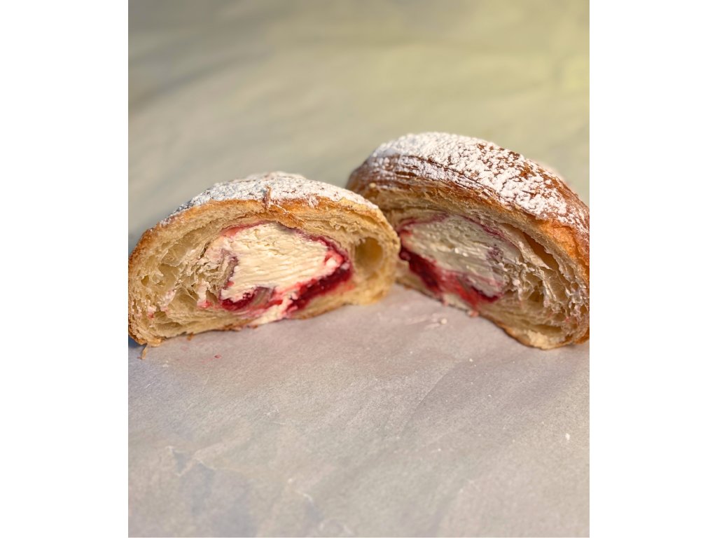 Vrstvené cesto je po upečení krehké a vláčne. Sladkosť bielej čokolády sa prirodzene prepája s jemnou kyslosťou malín, vďaka čomu má croissant vyváženú chuť bez presladeného dojmu.