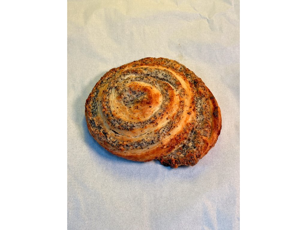 Vrstvené cesto je po upečení krehké na povrchu a vláčne vo vnútri. Slimák je plnený bohatou mandľovo-makovou plnkou z mletých mandlí, maku, masla a cukru, ktorá dodáva pečivu plnú, jemne orechovú chuť.
