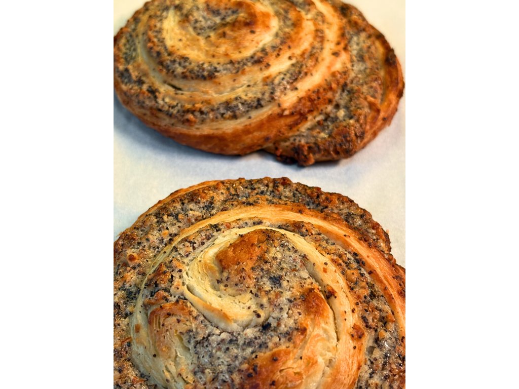 Zloženie: pšeničná múka, vajcia, maslo 82%, voda, cukor, droždie, soľ, plnka: mleté mandle , práškový cukor , maslo 82%, kryštálový cukor , mletý mak , pšeničná múka , vaječný bielok .